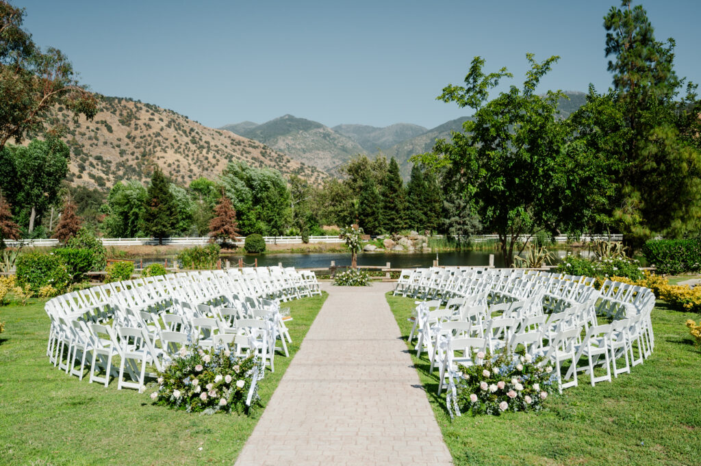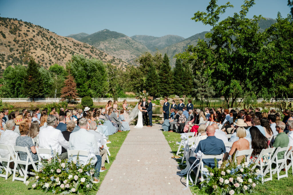 The rustic charm of the Springville Ranch wedding venue paired perfectly with carefully chosen cake, catering, and rentals, tying the whole day together beautifully.