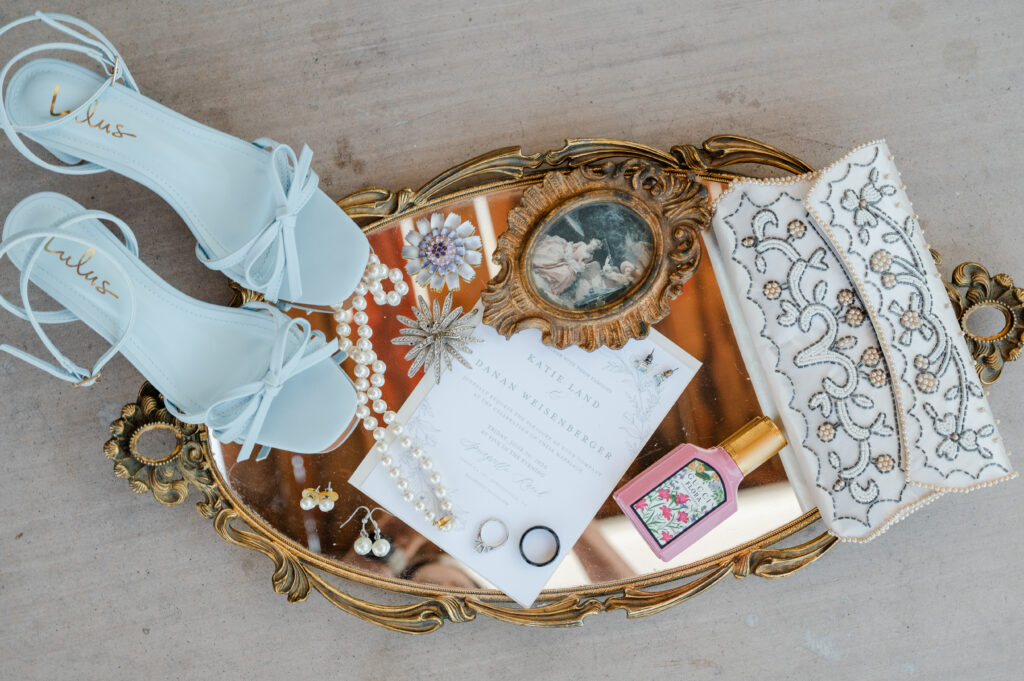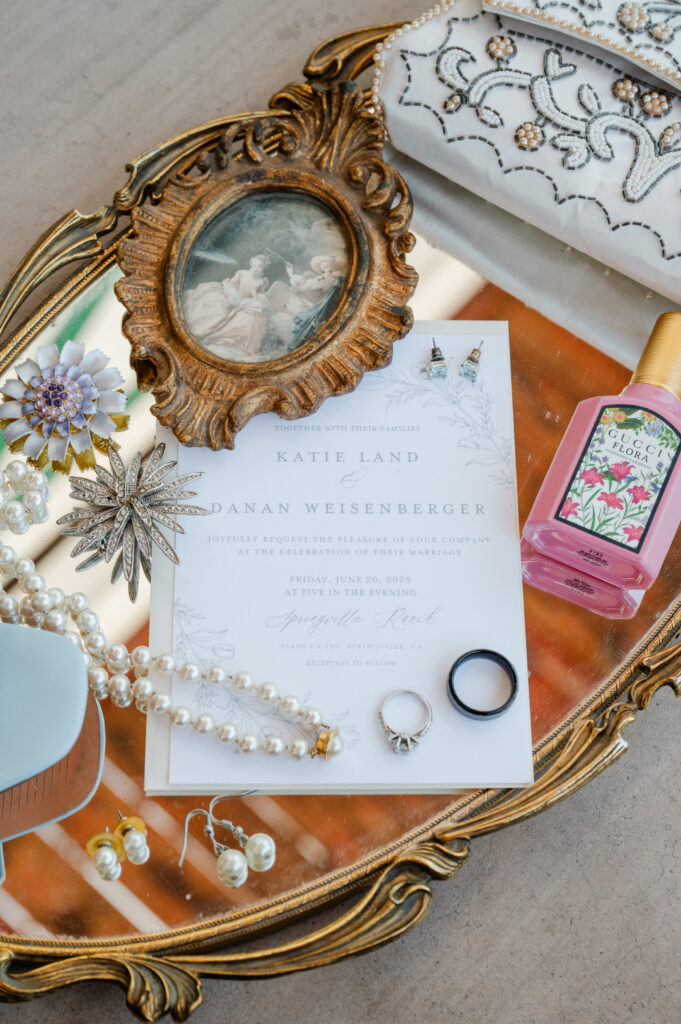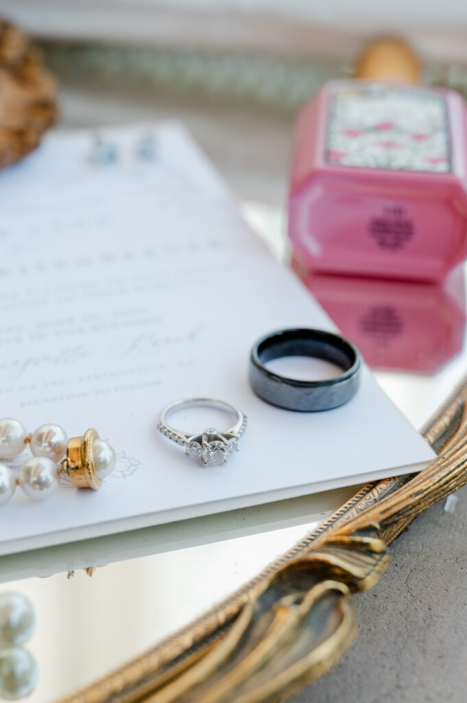 The small details tell as much of the story as the big moments. I photographed the rings and keepsakes in a thoughtful flatlay, along with décor, florals, and personal touches that made the day uniquely theirs.